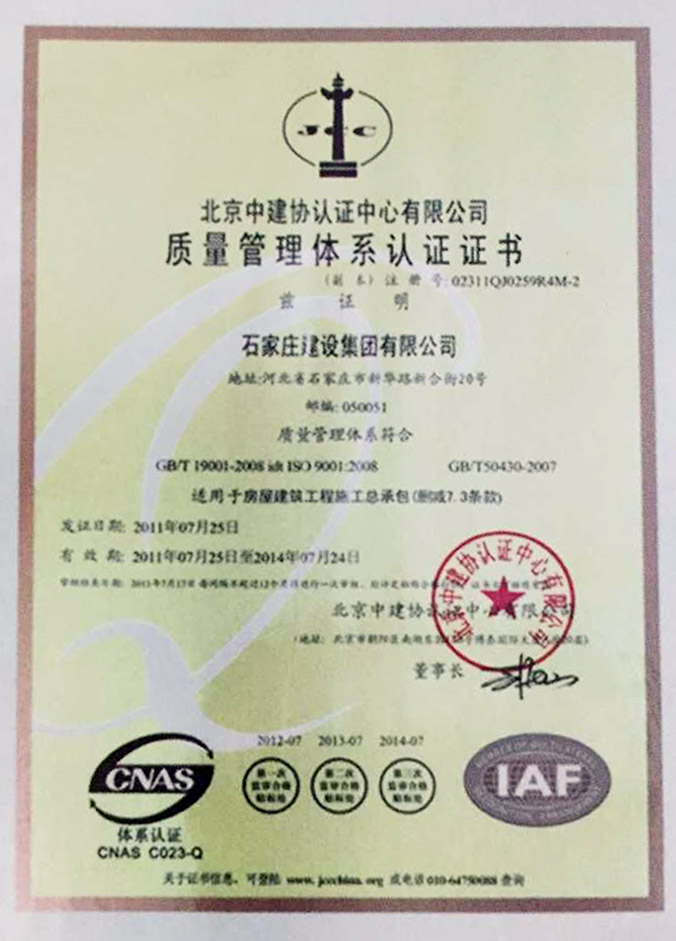 質(zhì)量管理體系認(rèn)證證書(shū)